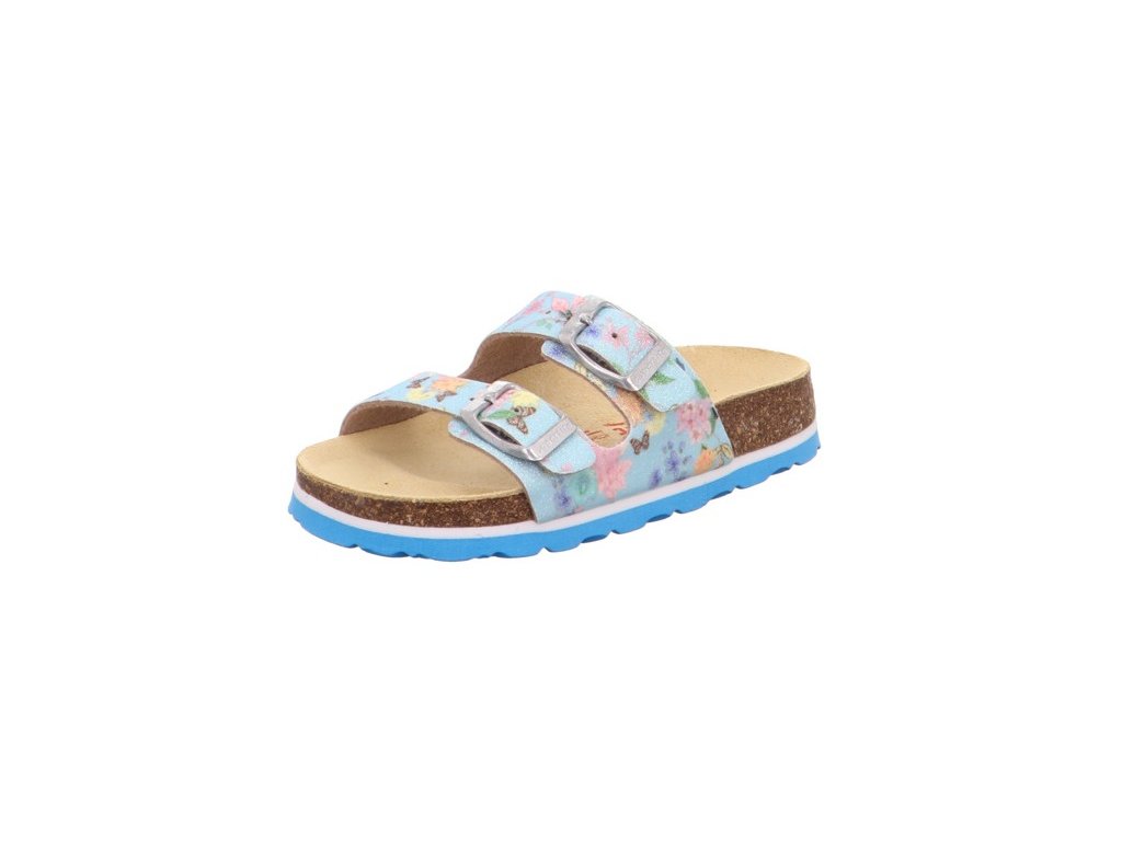 Nazouvací přezůvky značky Superfit, anatomicky tvarovaná kožená stélka na korkovém podkladu, nebarvící protiskluzná podešev, možnost upravit šířku dvěma sponami, nazouváky jsou velmi lehké.