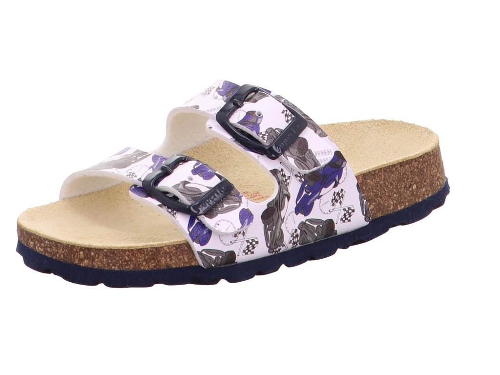Nazouvací přezůvky značky Superfit, anatomicky tvarovaná kožená stélka na korkovém podkladu, nebarvící protiskluzná podešev, možnost upravit šířku sponami, nazouváky jsou velmi lehké.