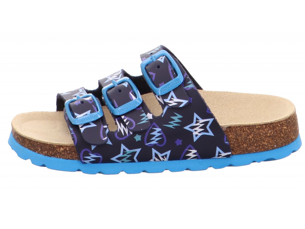 Nazouvací přezůvky značky Superfit, anatomicky tvarovaná kožená stélka na korkovém podkladu, nebarvící protiskluzná podešev, možnost upravit šířku sponami, nazouváky jsou velmi lehké.